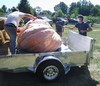 After all of the excitement at the scale here is an image of the pumpkin after being loaded on the trailer with a different viewing angle. This pumpkin is not only orange but even has some nice starburst speckling.