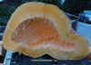 -Pumpkin growing on a hill causing in part the odd shape.