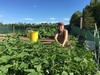 Pumpkins planted in their patch with huts for weather protection. (1,000 sq ft each patch)