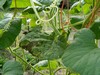 I have researched the disease on the long gourds and I think it is anthracnose. No lab diagnosis, funds don't allow the cost of testing this year. But I have lots of it on the trees and other plants in the valley. Brought on by humid conditions and poor are circulation, which describes our valley. At least I have an idea of what fungicides to use. I am going to modify the trellis to allow more room for growth and air circulation. And I will cut back from 4 plants to just 3 and do some vine pruning. Since I have gotten fertility levels up the plants get much bigger that they used to get.