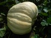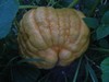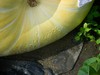 Volunteer that came from last year's Survivor. That one won't give up: survived a flood, mice ate into the pumpkin and it rotted, seed on the ground all winter, planted when I tilled for tomatoes. It came from Joe Scherber's Colorado state record, which grew in the toughest climate around. I just had to let it grow.