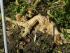 Rabbits!! This is the end of the 1928 Globus main. I'm glad that I already had 3 pollinated on the main. The for is dog hair. My daughter has her border collie trimmed up for the summer and saves the hair to use as rabbit repellant. The groomer even gave her the hair from another dog. I needed a little slow release nitrogen for some plants so I got blood meal. I've heard it repels rabbits. I need to get more fox urine and get out the pellet rifle. I also got a bag of dry beans to plant to draw the critters away from the garden.