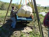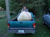 Jacob is guiding the pumpkin as I back the Ranger under it. Loading went well,. A big sigh of relief.