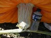 Every year in mid May we seem to get a frost. Looks like tonight is the night. The sky is clear and the air is dead calm. The cold air will sink into our valley. Jacob and I got everything covered so we hope our plants survive. The AG's and long gourds could look better, but the bushel gourds and tomatoes are doing great.