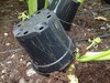 We sprinkle our "stuff" over the top and simply turn over a pot on every joint. We are going to leave the pot on for a while to keep the moisture on the node.