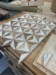 While waiting for spring, I have been playing around with some more 3 D wood work , this will probably be a top for a outside table , not sure... really not as hard to make as it seems , 60 degrees is the angle and follow the arrow heads for the layout and of coarse the contrasting colors make the effect ...