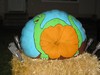 This is my little biddy squash I grew this year. It is the only fruit that made it to a weight off at 418 lbs. Dori my better half painted it to go in our front yard.