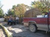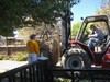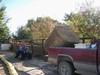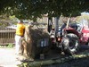 Unloading the bale with Dori's wheeler.