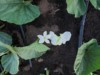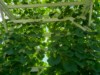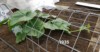 Long gourds are advancing across the top of the trellis!