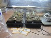 I re-potted 11 kins today. I use Fox Farms potting mix(great stuff) and added WOW mycos. This will keep the kins from getting rootbound for about a week in 1 gallon pots. It is important for me to not ever inhibit their root structure. I put some in 1.5 gallon to get a month or so out of them for backups.