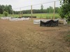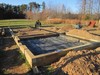 I went with 11'x 11' and it ended up being 14" deep. For the sides I used scrap 6x6 post material I save from work. I will put a small layer of creek sand on the fabric before I fill it with my soil.
