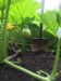 Whimpys plant got unleashed yesterday... Today's sweaty project?... Long gourd trellis...I had to use the hoop house to hold the legs up ... I tried it without it first with the misses but...well... Let's just say it was easier this way...