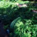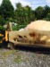 Here's the farm pumpkin ...it's bird bathin and the stem is getting drivin into the ground...taping 687lbs...there's another really fast starter on a side vine... I'll let them both grow...looks like it's growing pretty good... Haven't watered this plant and the dirt looks pretty dry...if he had water up there I would def be giving her a drink...I might have to find a way to get serious about one in this patch next year ...all day sun here