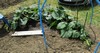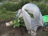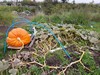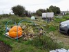 Overhead shot of my allotment. The 1027 Bridges is pulled up at the top left, with a late pollination on the 1109 Borgers and Hildegard pumpkin on the 529 Wagler to the right. The plants are in the worst looking I've ever had, very aged and covered in Powdery Mildew.