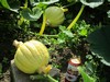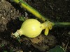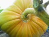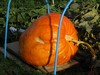 1027 Bridges, there are 4 pumpkins this size now on the plant...the one on the left is on the main vine and the one on the right is on a secondary. All other pumpkins have aborted on this plant, neither does she produce any male flowers....her days are numbered.