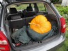Baby plants in my small car ready to go down to my allotment on 'planting out day'