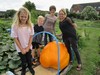 Unloaded ready for weighing, with the Patons' pumpkin behind me.