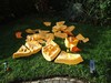 Lit up using the new outdoor Christmas lights we bought...she's meant to be inspired by the Cheshire Cat.