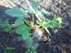Peanut pumpkin - treating for SVB damage. I was able to save main vine fruits, but still noticing a few issues. Corn/weeds beyond removed on 08.02.2016. In background my 1049 Swain covered with blue wet towel.