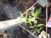 DAP 16 - readjusted the shade shelter to cover more of the plant and fruit. Need to bury more vines this evening. Sprayed with Sevin and Daconil since I already saw downy mildew in neighboring gardens. Very windy today and temps are on the move down this evening! Not much rain, so I need to haul some water.