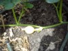The Good, the BAD, and the Ugly of squash vine borers. Pictured is the 1623 Wallace or what is left after the SVB invited itself to feast on this plant. The main is no more, but the secondaries produced a female for pollination. Under the plexiglass is the stump (base) and as shown, the second secondary has been severed to clean out the damaged vine and treat the infected area. Malathion was applied to control SVB and on Thursday, another fungicide treatment will be applied. Ah, happy growing conditions in the community garden plots infested with SVB and so many others.