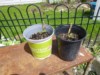 5 gallon pails I bought for the 5 gallon pail tomato challenge when I was at Menard's getting things for a much overdue lawnmower maintenance; Change oil and spark plug and sharpen blade.
