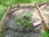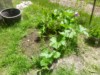 122 Lyons Marrow plant. Starting to train a secondary vine to run south to north.