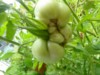F2 Deformed Porterhouse tomato. When I started growing Porterhouse tomatoes last year, this is what I hoped could happen. Multiple tomatoes from a bloom. I hope that each tomato will weigh over 4 pounds each. The original seed packet said the tomato could weigh upto 4 pounds. If 3 tomatoes weigh 4 pounds each, then I would end up with a 12 pound tomato. I hope that the trait of the whole tomato weighing 4 pounds goes away. We'll see how this tomato grows out.