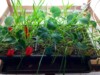 The winter tomatoes look good. Getting some nutrient lock out from excess organics maybe. The roots are already out to the walls of the tub. The plants are 5 inches but the roots are twice that. I can see the 20 gallon tub would be correctly sized. 8 gallons will grow a tomato but I think to get over two pounds I need more root space.