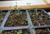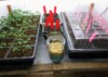 Seed tray Rows: of garden soil vs seed starting mix.