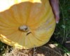 Biggest off the 1963.5 Stevens 150 sq ft plant. This plant also had an incoherent approach to growing pumpkins. It aborted so many that finally I let everything grow. This was the largest. The plant probably produced around 600 lbs total. Equal to the production in past years, so no improvement.