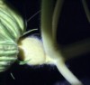 This is a 1/4 inch or less pumpkin stem section viewed through a microscope. There is a mite, which is exceedingly tiny. There were many of these, and only one was large enough to be seen by the naked eye... Far smaller than a spider mite. I guess they came from the soil. Some of the soil I used was not frozen, but perhaps there could have been eggs or perhaps they can survive freezing. Anyhow... I had no clue about the hordes and never would have... if it wasn't for cutting some plants up to study the xylem and phloem... these guys we're an unexpected surprise. Some of the bundles of xylem and phloem are visible here also.