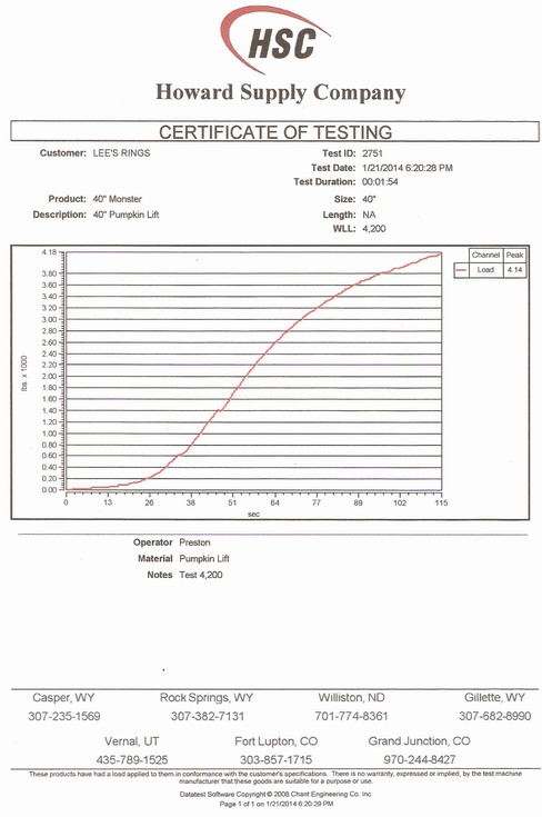 Tested my 40" Monster Ring today. Pulled it to 4,140 lbs with no problems. It would handle much more.