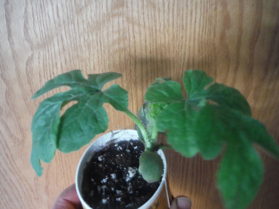 This is a 291 Kent.I had to tighten up the melon sisters by moving the plant 6 inches to accommodate the little hoop house I am using.In the process this plant got yanked out of the ground(gently)of course.Im always gentle handling melons.Any HOO! I carried this plant to the basement in the palm of my hand roots exposed to the world,like a bad bleach blondes hairdo.I put in in my dirt tub & covered the roots with dry peat mix.24 hrs later I noticed it as ALIVE & looking good.So I put in in this cup & watered it.I think these melons are pretty hardy.I put a bigger plant in its place.SHH! Dont tell Bill & Marvin.My melons are looking better then I have ever seen before on May 18th.SHHH!