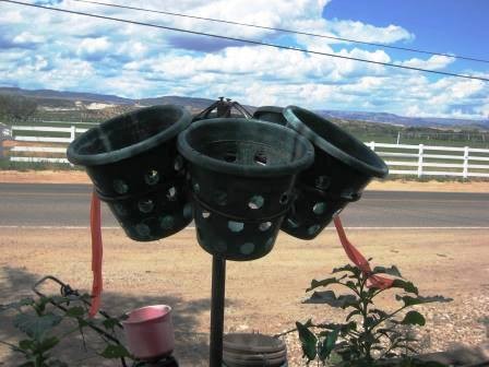 This is a 40 inch ring that I used in testing and it bent. Have placed it on top of a pipe and 6, 5 gallon sized flower pots have been placed in the rings. Hanging baskets could be hung from the out side as in the 27 inch rings. I am sure you can come up with other ideas to make a ring useful when it is not lifting pumpkins. Just remember to remove the straps and put them in a cool dry place for storage until lifting time comes.