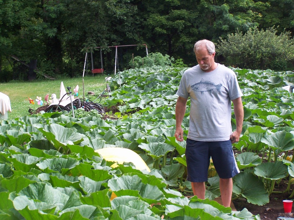 For early August I am happy with my fruit size.. I see I have some pics of my last tour at Dyberry Patch's that I did not post. Andy's patch is filling in nicely.. and his main patch.. has huge leaves.. huge vines.. and I bet we can expect something big. Fingers crossed.