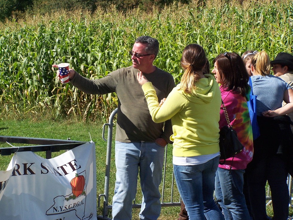 A good crowd show up to watch the fruit being weighed. TC had a good time explaining pumpkin growing to some girls who knew nothing at all about pumpkin growing... it was a good match.
