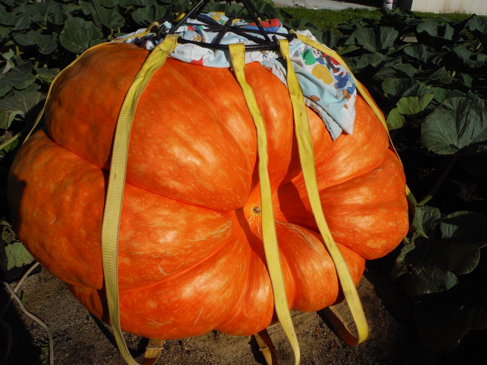 This is my new good friend Todd Cotterman.I have known his family casual for years.But growing giants creates a lot of great friendships.Todd decided he wated to grow his first kin last spring.He started late & took a 1478.5 Clementz cull from my garden on June 13th.Wow! taping like 1200 lbs now!!Woot Woot.We weighesd it today SHHH I cant tell a soul!