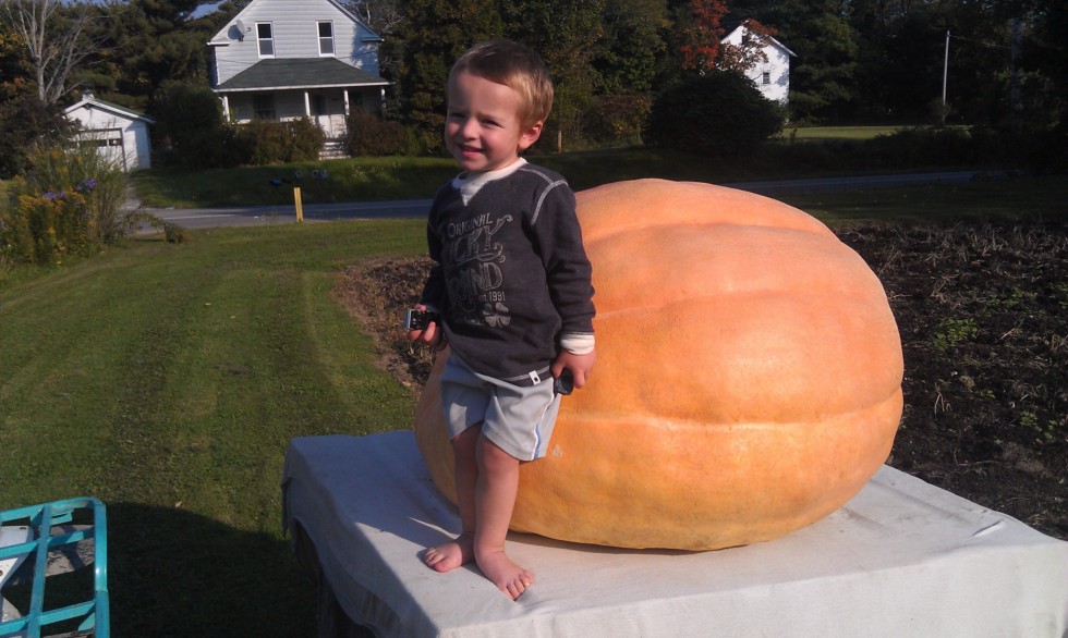 My grandson with his Halloween Pumpkin. It was picking day yesterday.