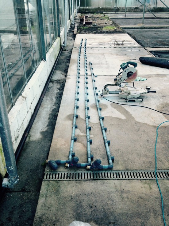 Stuart working on the new watering headers. The plants are way wider than ever before and we are also putting the drip tube just a little closer together.