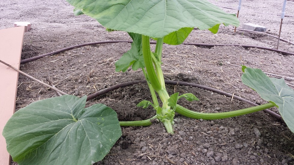 The naked stump. These leaves will die off anyhow so getting rid of them early might force a bit more energy into the growing tip. After trimming these bits off with a new very sharp blade, give them a little brushing of garden sulphur. Powdered sulphur is a wonderful antiseptic for pumpkin cuts. I'll follow this up with a pic of my sulphur jar, brush and cutting blade.