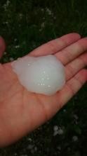 The hail here wasn't too bad, but I could hear some hitting the windows. My daughter was a few miles south and ran into bad hail. This is one she saw, about tennis ball size. She saw at least one car with a shattered windshield.
