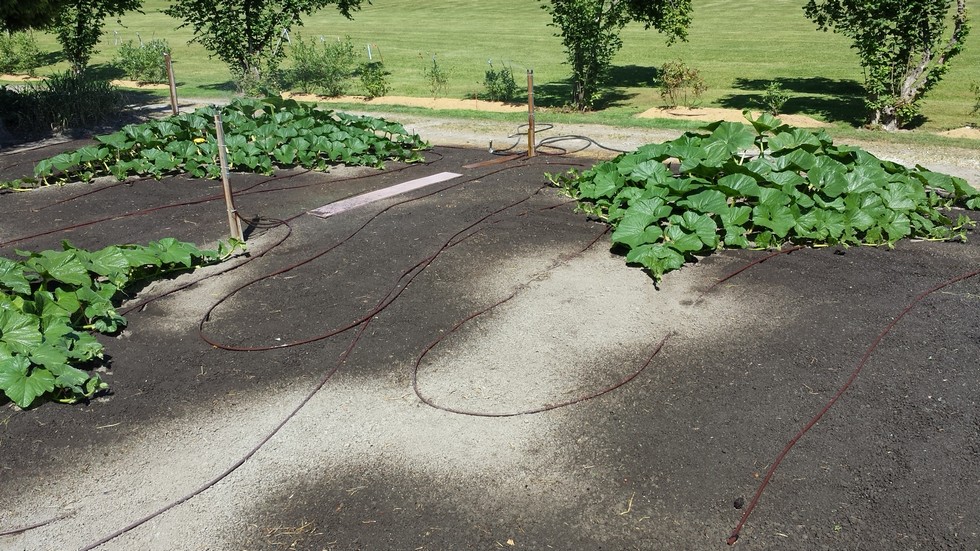 My overhead sprayer system used to deliver plain water to prevent sunburn. Its fed from a 1000 liter tote powered by an electric pump producing 35 psi. I'd like a little more pressure but this will have to do. When the plants fill the patch the sprayers will be used to deliver the fertilizers and micros.