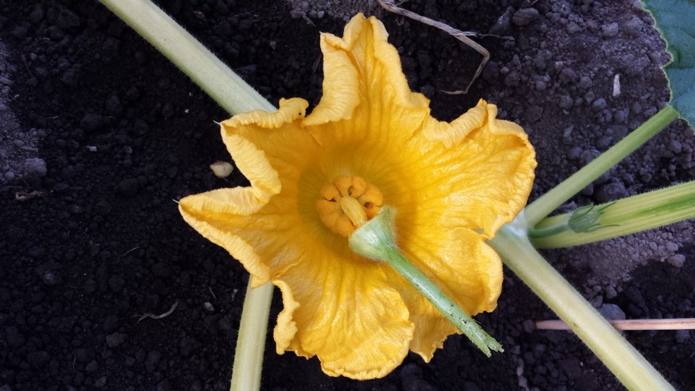 Pumpkin sex. Pollen from a Carley 1177 is being rubbed onto the lobes of the Dixon 1124. Don't be afraid to use 2, 3 or even 4 males to obtain enough for pollination.