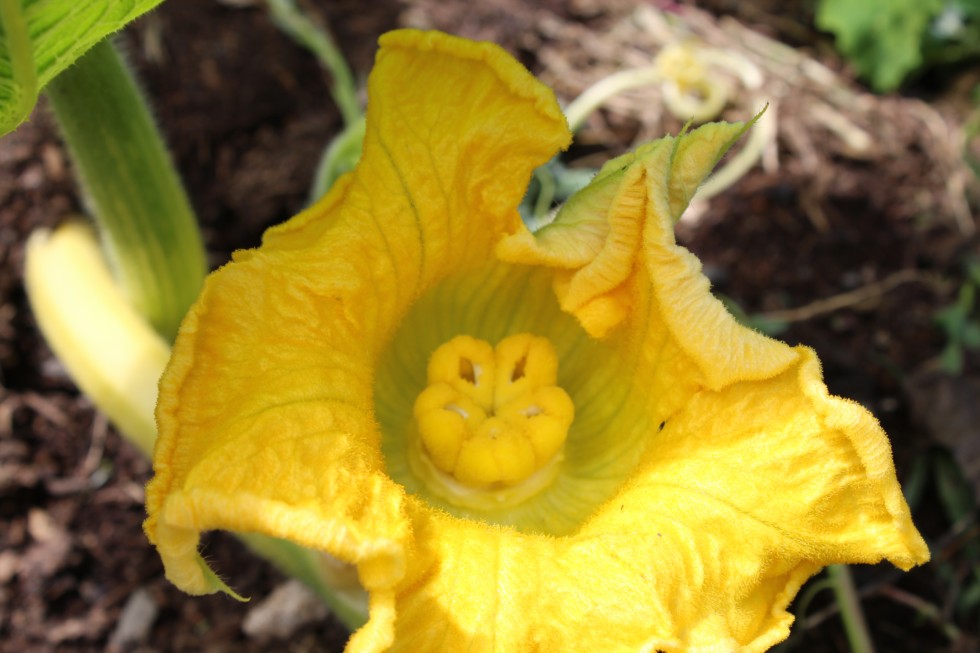 It's pollination day for the 1400 Lopresti! I have a 5-lobed female about 14 feet out on the main vine, and she is almost perpendicular to the vine. Couldn't ask for much more than that! I was not expecting the flower to open up today, and of course last night I was house sitting for somebody and didn't get to my house until about 1:30pm today. The flower was still open when I got there, so hopefully all is good. I didn't have any male flowers on my other "neglected" pumpkin plant at home, and I didn't have time to get to my 1695 Gaboury at the Bangor Community Garden, so I decided to self-pollinate this plant. Let the excitement begin!