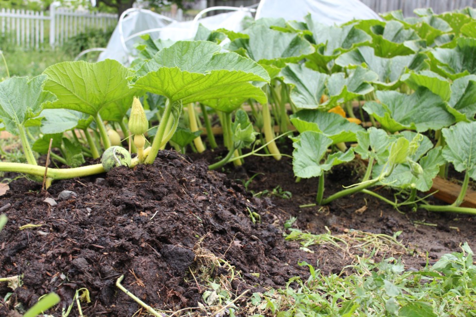 This is a photo of the back-up female 17 feet out on the main vine. I expect the flower to open up tomorrow. I'm doing an experiment this year with the vine. I mounded up a bunch of soil/compost/manure as preparation for the stem stress that will occur as the pumpkin grows. I'm hoping by doing this, I won't have to cut the roots as soon into the season since the pumpkin will grow down below the vine before it starts getting bigger and picking the vine up. I expect eventually I will have to cut the roots next to the pumpkin to relieve pressure on the vine, but I'm interested to see if this will help at all.