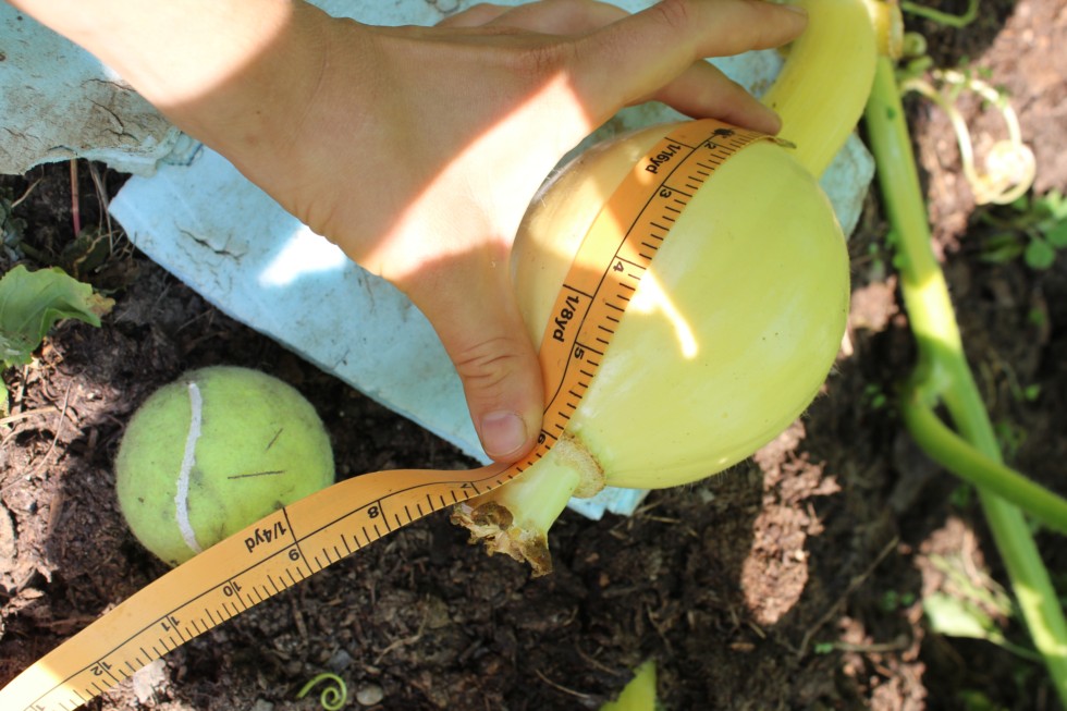 Good news: the stagnant pumpkin on the 1400 Lopresti has been growing! I started measuring it from stem to blossom end, and it gained an inch yesterday and today. The pumpkin is not falling into place very smoothly, and right now it's in a position where it wants to fall right back on the vine. I'm using some hard foam to prevent it from landing on the vine and getting scratched/scarred, and once it is a little bigger I will gently move it perpendicular to the vine. I still have the back-up pumpkin growing just to be safe.