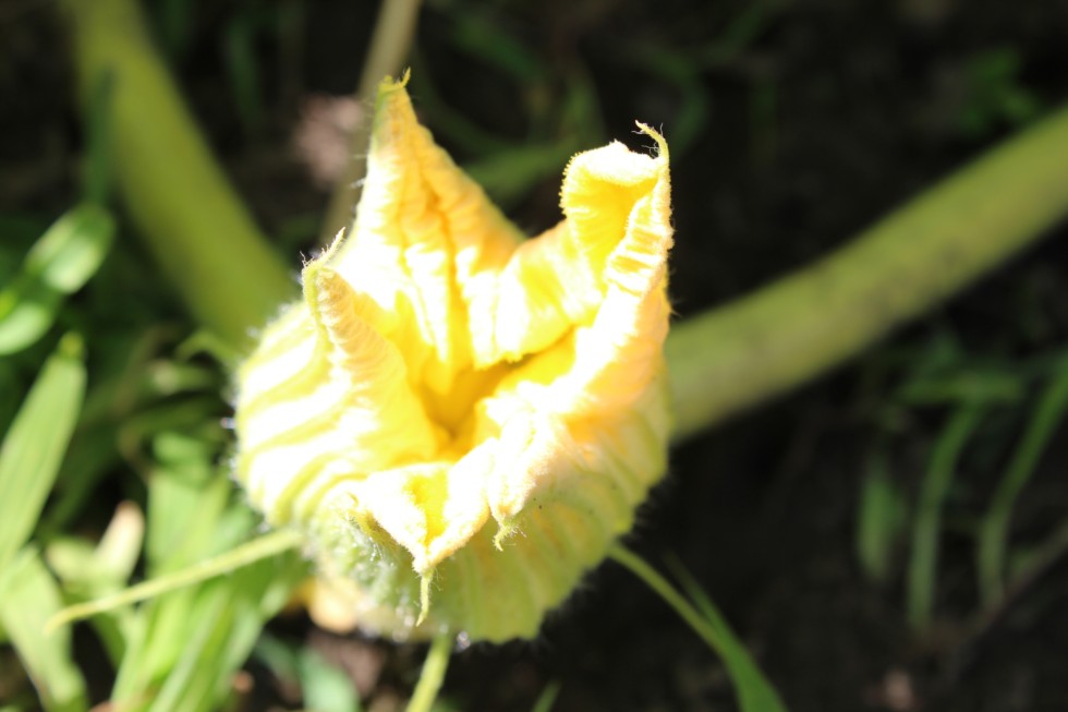 I went out to the garden early this morning because my 1421 Gaboury was going to open today based on the way the flower looked yesterday. However, when I got out the flower was only partially open. I decided to collect some male flowers anyway, but for some reason none of my male flowers had visible pollen grains on them, almost like the rain had washed them all clean. And I have tons of males on both my plants. I decided to "paint" a few males onto that female anyway, and I'm going to leave it up to the bees to do the rest since I don't think my hand pollination was very effective. The pumpkin isn't very far out on the main vine and it's late for pollinating, so I'm not expecting much from this one, but I'm still excited to see how much it grows. It has 5 lobes, one of which is a bit deformed.