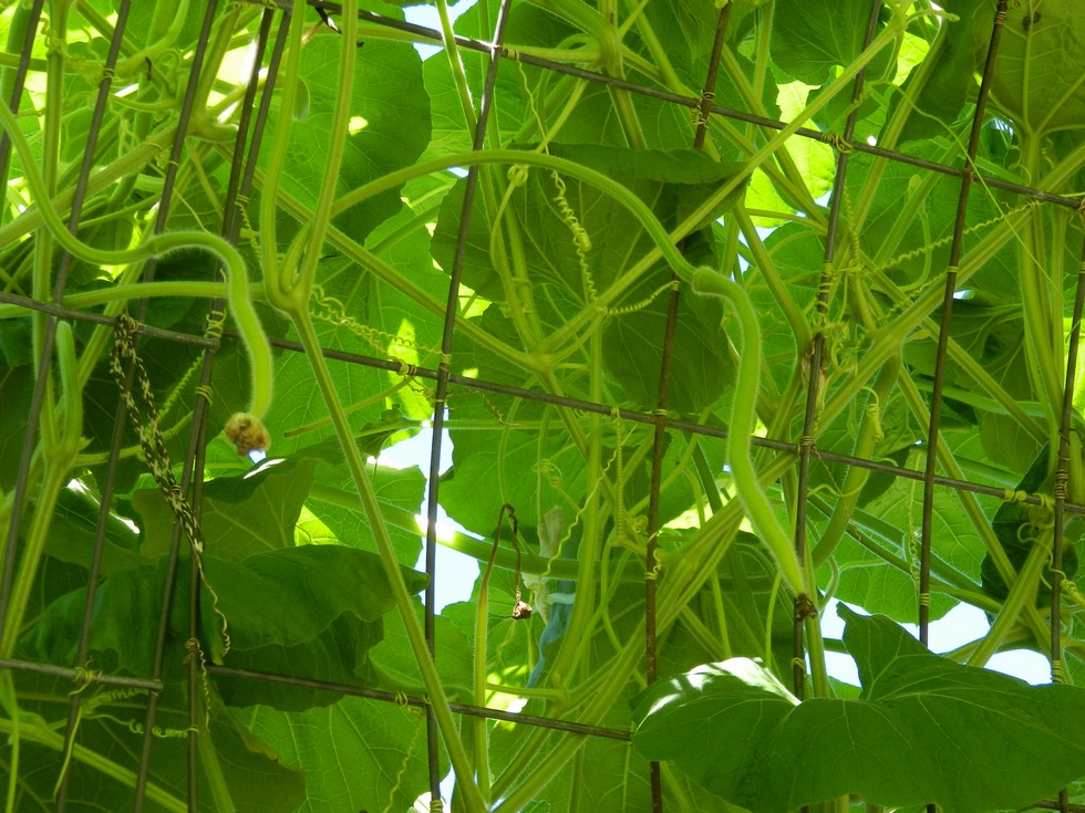 Things are starting to look up on the long gourd trellis. These are on the 137.5 Ansems, and we have some on the 123 McWilliams. Soon we will begin foliar feeding.
