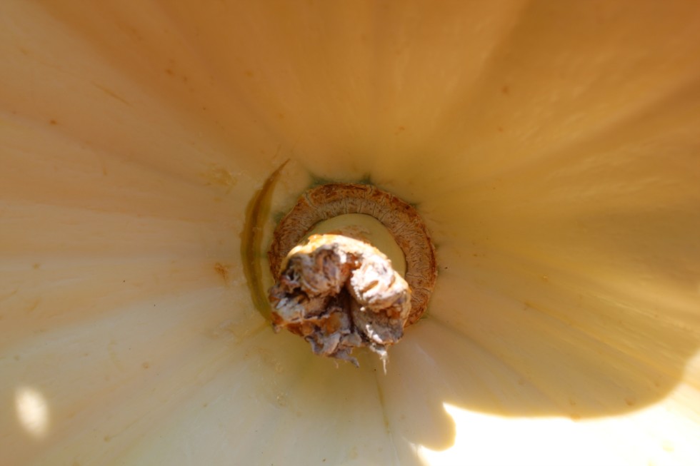 The 1400 Lopresti has been gaining a steady 18-20 pounds a day, and her estimated weight today was 252 pounds! During my daily "inspection" today, I noticed that she has started to develop a blossom end split. I cleaned up the "goo" that was coming out of it and put some Captan paste on it. I have not watered all week because the soil has been wet from the rain, and the only fertilizer I've done is a foliar spray of fish/seaweed and CalMag. I will hold off on all water and amendments until she starts to heal. I don't want my baby to explode! I will be doing some more research on blossom end splints, and I am open to other suggestions that you experts may have :).